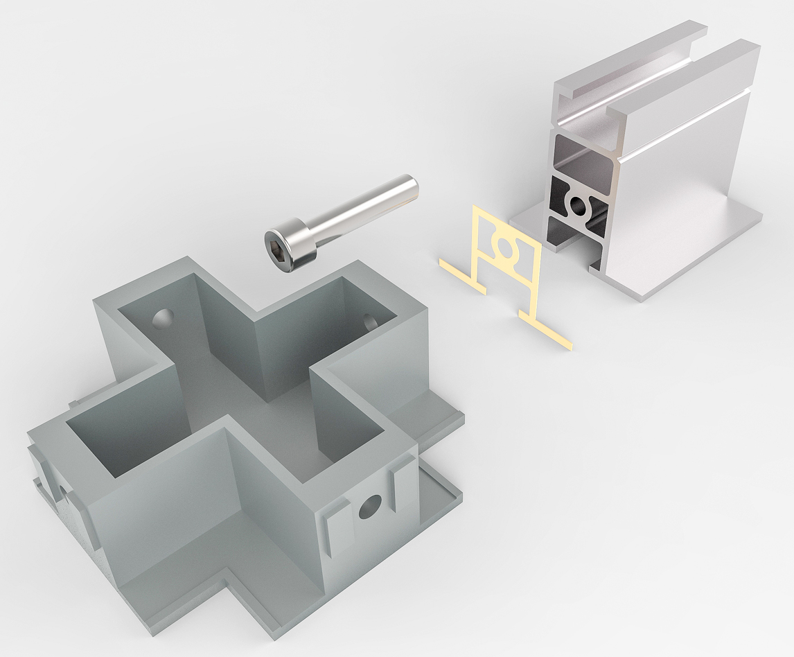 Предварительная фрезеровка профилей для сборки не требуется. Порезка профилей, нарезание резьбы для соединителей и сборка каркаса может осуществляется по месту.