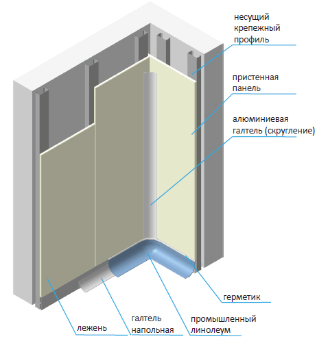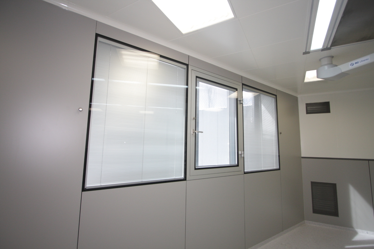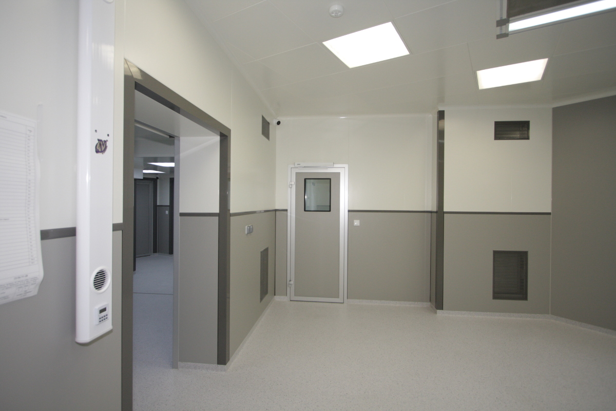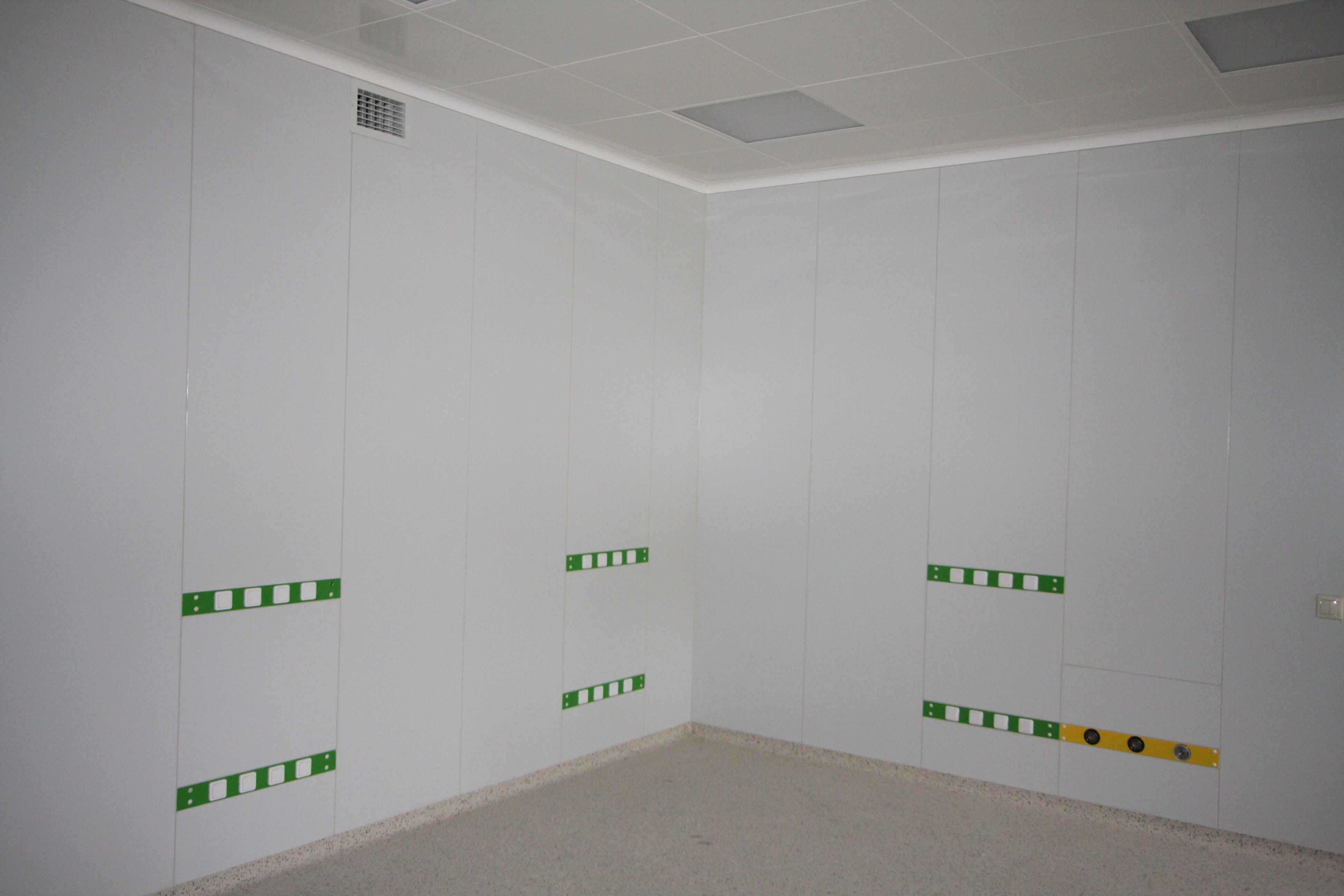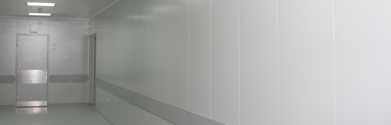 Ламинат высокого давления (High Pressure Laminate, HPL) представляет собой материал с уникальными физическими характеристиками, который идеально подходит для стеновых конструкций чистых помещений. По своей сути – это бумажно-слоистый пластик. Бумага пропитывается термоактивными смолами, укладывается послойно в листы определенного формата и спекается под воздействием нужной температуры и давления. Лицевой слой ламината формирует декоративная бумага, пропитанная смолой меламина. Для стеновых конструкций мы используем ламинат толщиной 6мм и более.