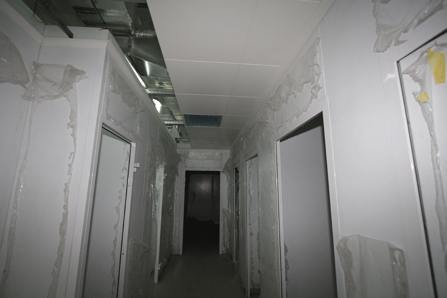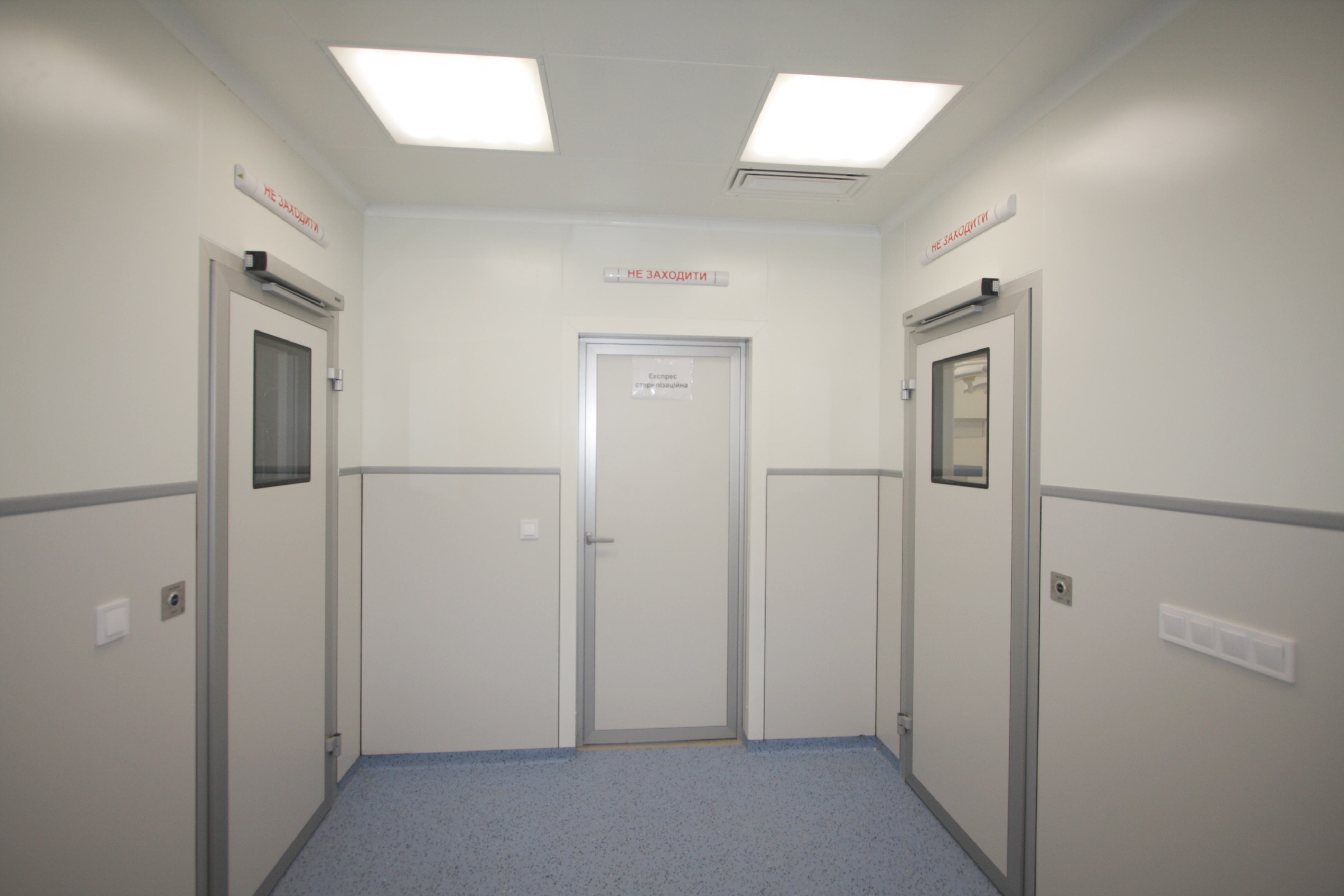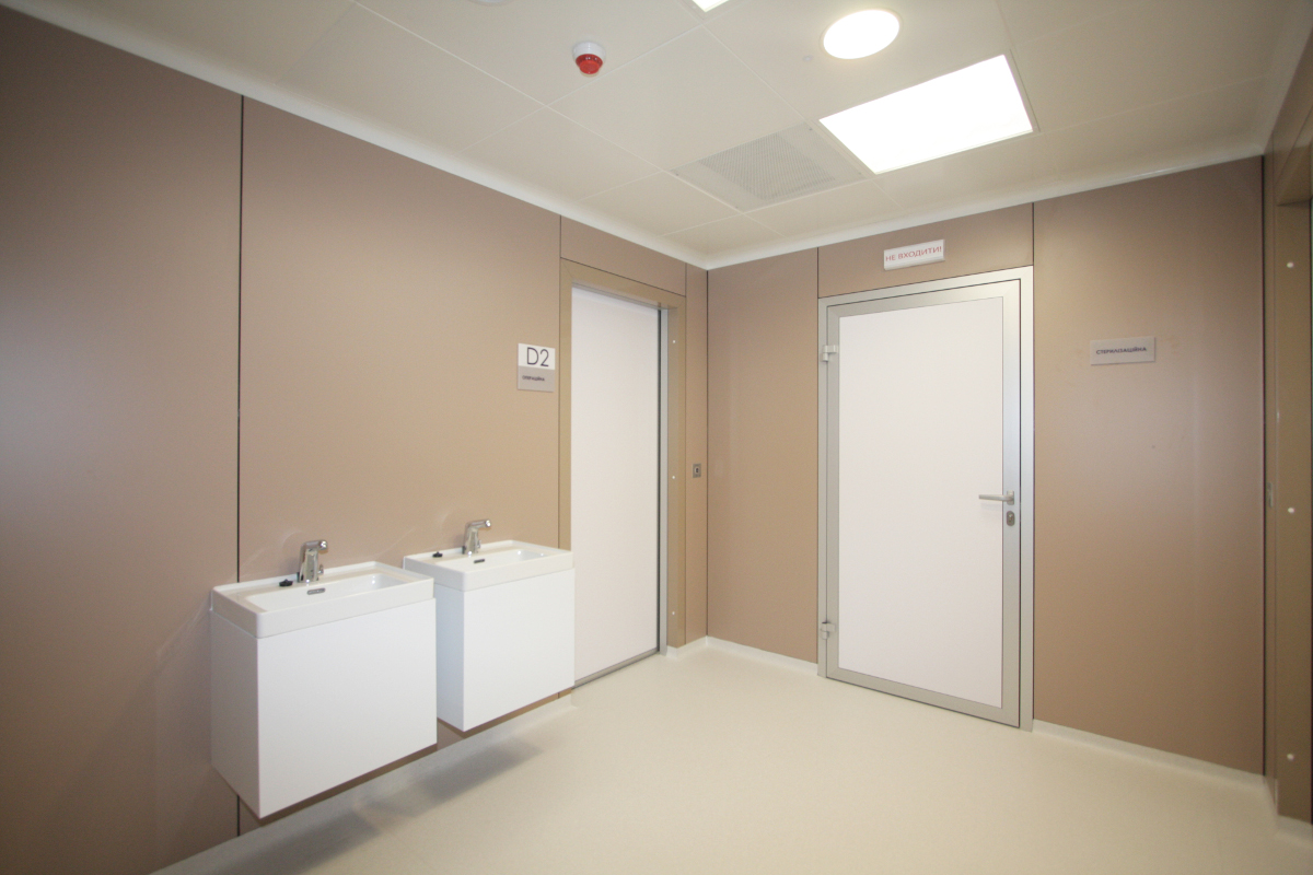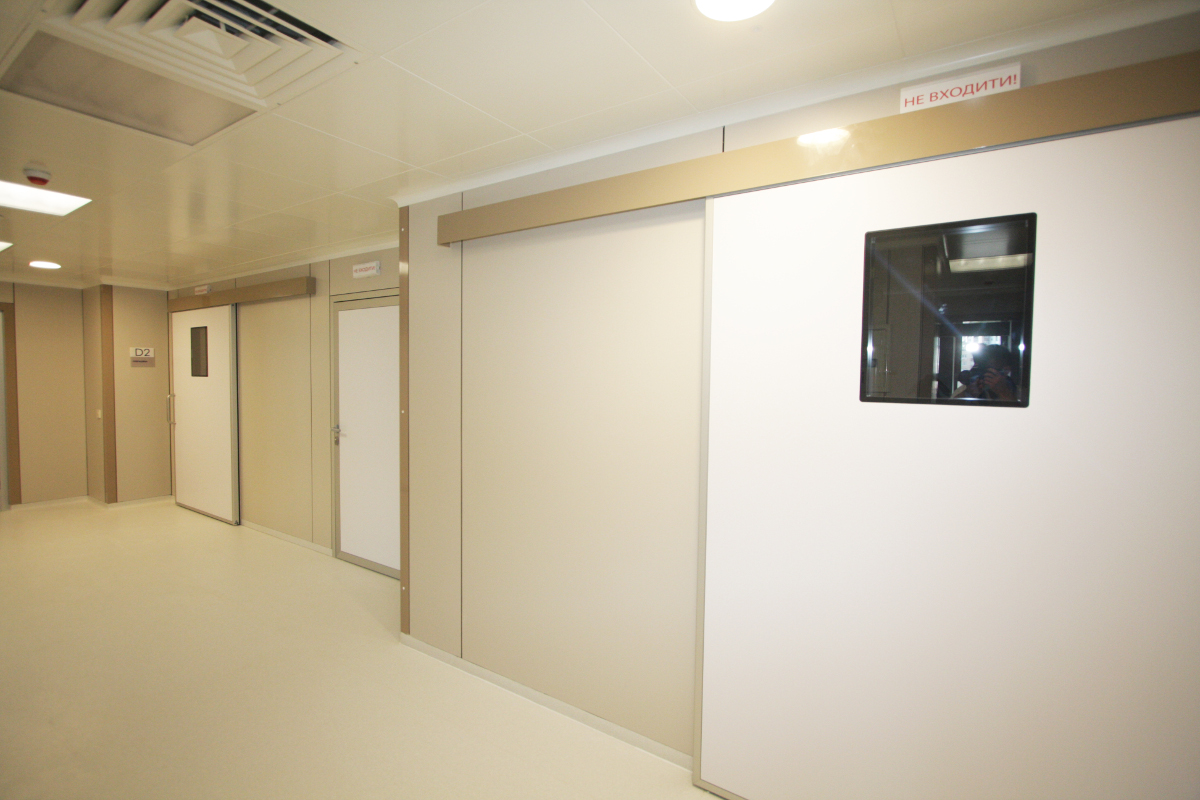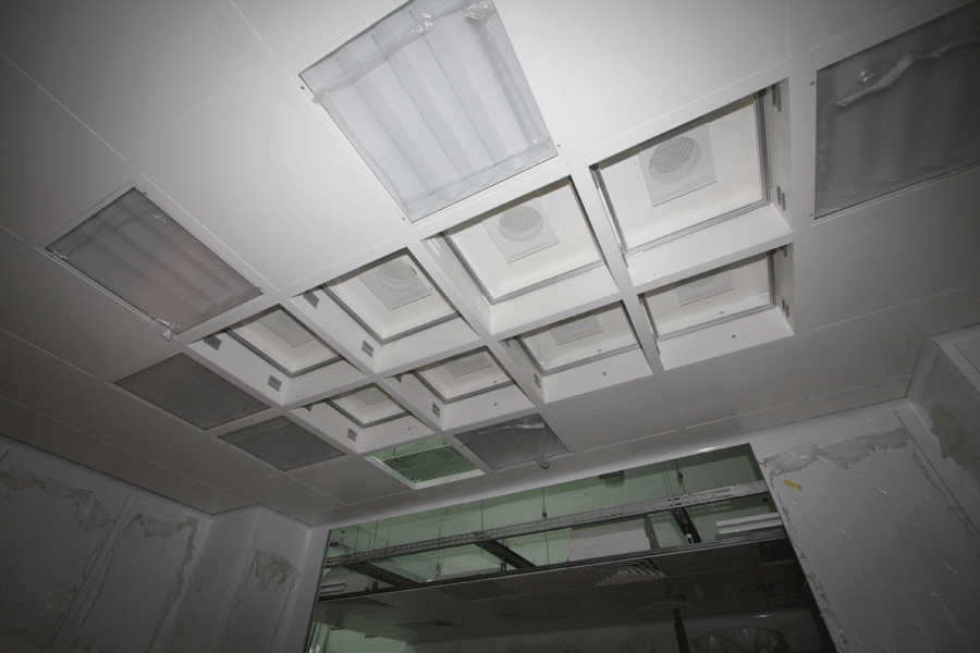 Поставлены системы подвесных потолков и стен, выполнена отделка манипуляционных помещений