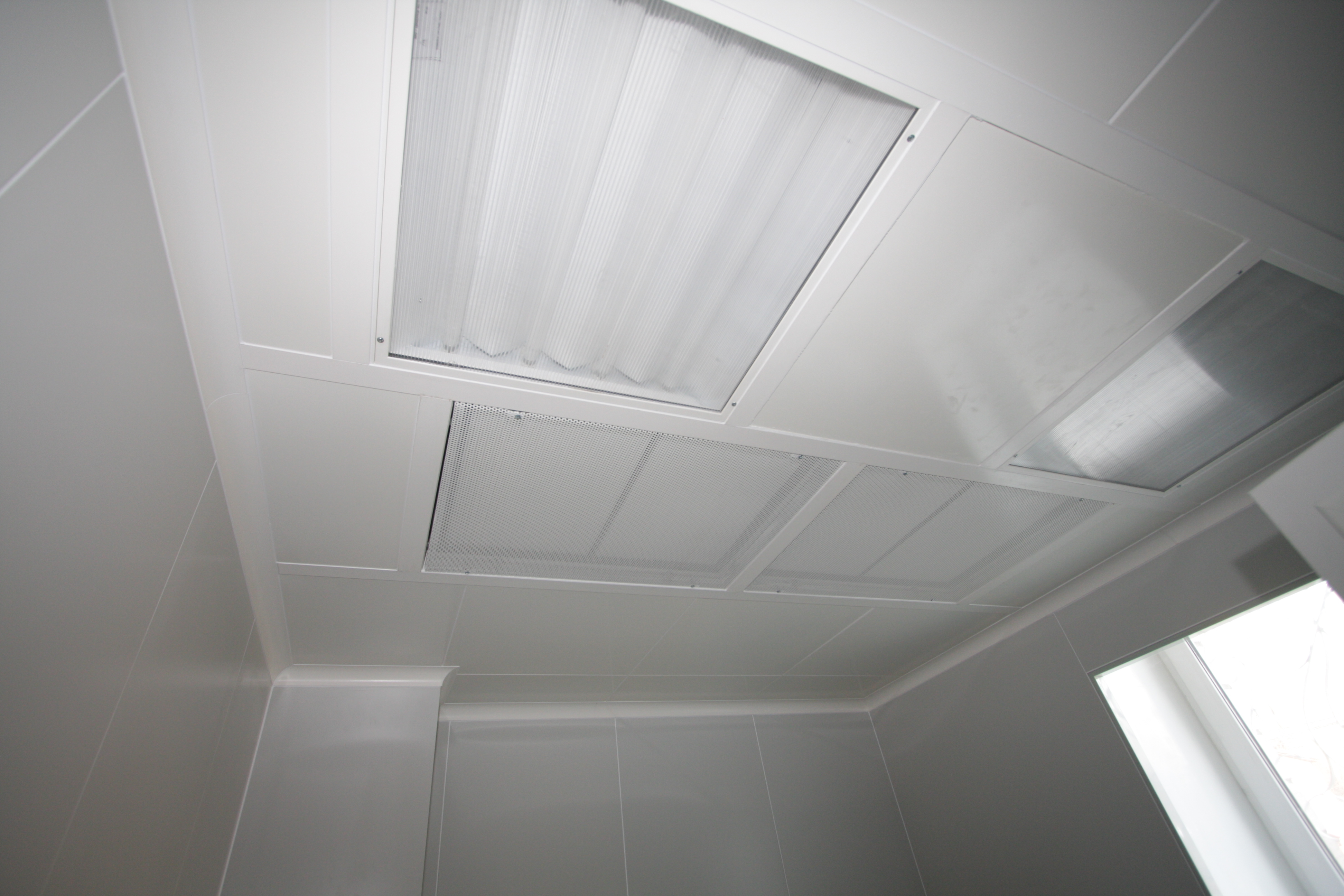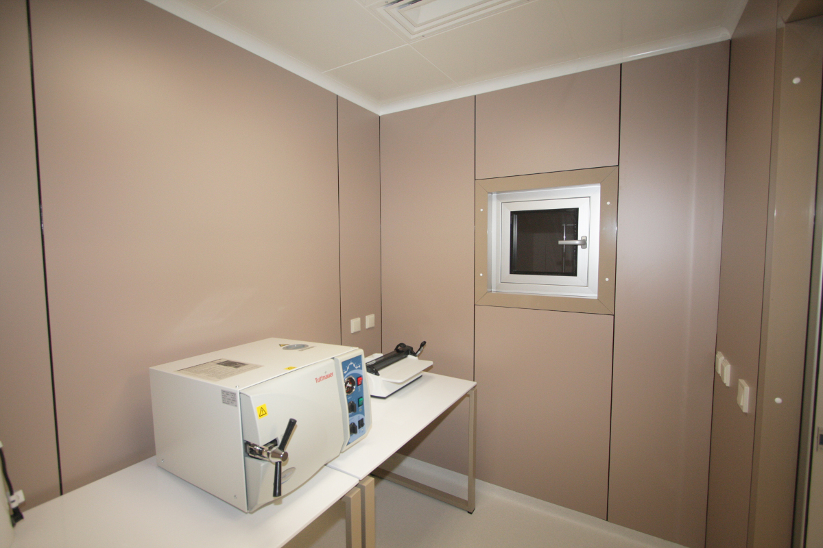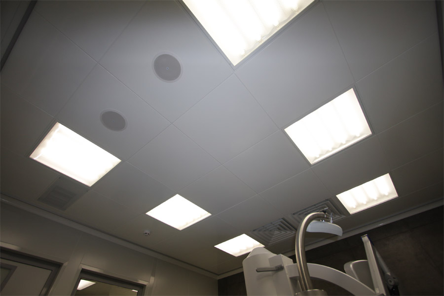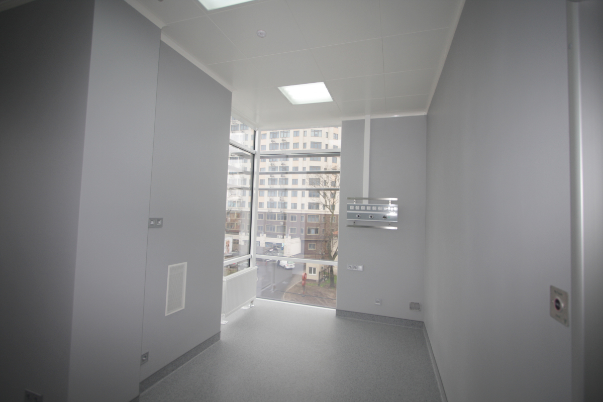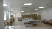Поставлены системы подвесных потолков и стен, выполнена отделка манипуляционных помещений