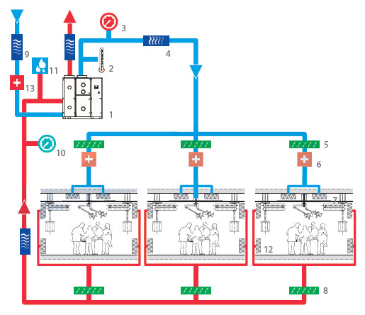Европейские нормы допускают рециркуляцию при условии соблюдения следующих требований: (1) Рециркуляция осуществляется в пределах одного и того же помещения; (2) Рециркуляционный воздух, равно как и наружный, должен быть подвержен очистке 2-й и 3-й ступени фильтрации; (3) Уровень шума в центре операционного помещения на уровне 1,7 м от пола не должен превышать 48 Дб.