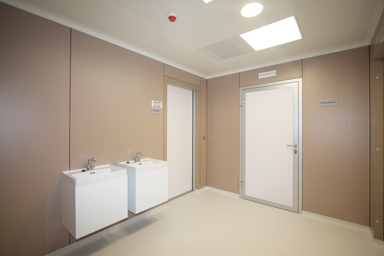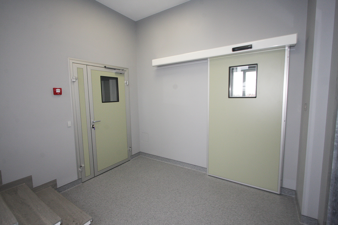 Полотна дверей мають абсолютно гладку, зручну для протирання та дезінфекції поверхню. Оглядове віконце, а також примикання профілю рами полотна до лицьового HPL або скла виконано врівень, без виступаючих частин. Матеріали стійкі до впливу деззасобів та ультрафіолету.